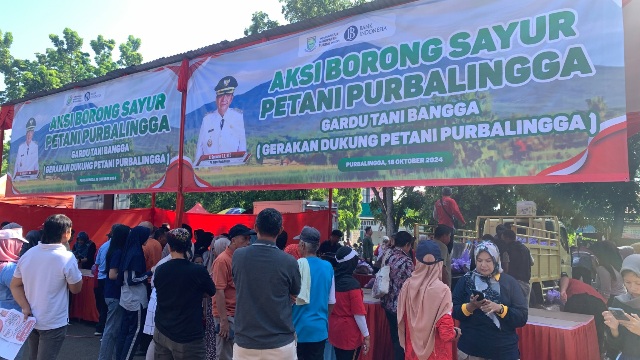 WARTA ANDALAS, PURBALINGGA – Pemerintah Kabupaten Purbalingga melaksanakan Gerakan Dukung Petani Purbalingga (Gardu Tani Bangga) dengan aksi borong sayur di area parkir selatan GOR Goentoer Darjono, Jumat (18/10/24). Kegiatan yang digagas oleh Tim Pengendalian Inflasi Daerah (TPID) dan Tim Perluasan dan Percepatan Digitalisasi Daerah (TP2DD) ini menyediakan lebih dari 1.000 paket sayuran yang dijual kepada masyarakat.