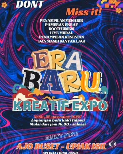 Jelang Kampanye akbar yang direncanakan bakal digelar pada tanggal 23 November mendatang, besok, Selasa 13 November Paslon Riyanda – Jeffry juga bakal menggelar Pameran dan Hiburan bertajuk “Era Baru Creative Expo di lapangan bola kaki Talawi.