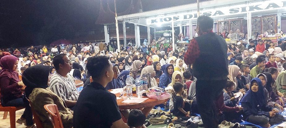 Dalam hiburan yang menghadirkan Cinta KIM dari kota Padang pimpinan Don Bobo itu, penonton tampak antusias menanti keberuntungan mendapat hadiah yang disediakan panitia.